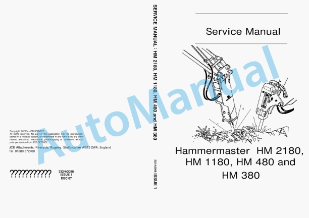 JCB HM 2180, HM 1180, HM 480, HM 380 Hammermaster Service Manual 332-A3098
