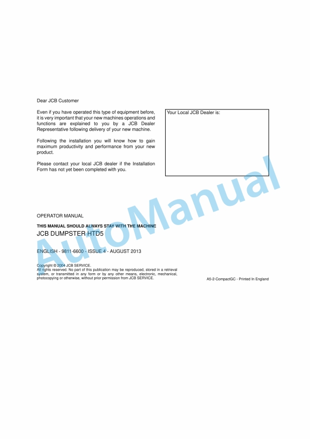 JCB HTD5 Dumpster Operator Manual 9811-6600