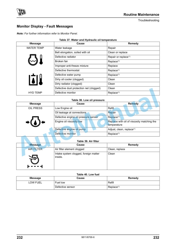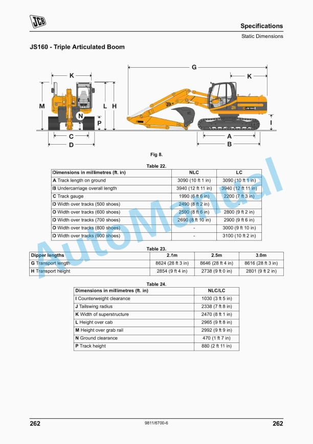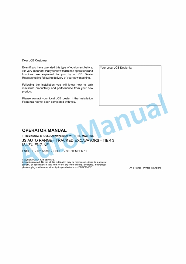 JCB JS Auto Range – Tracked Excavator – Tier 3 Isuzu Engine Operator Manual 9811-6700
