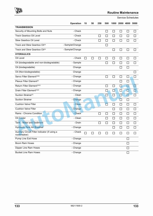 JCB JS Auto Range – Tracked Excavators – Tier 4 Isuzu Engine Operator Manual 9821-1800