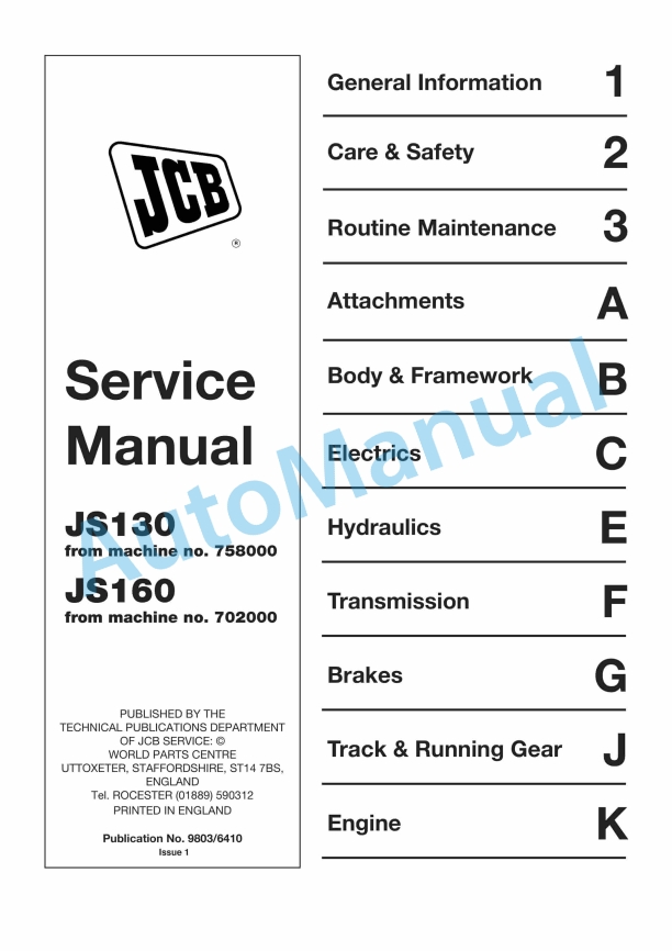 JCB AMS JS Machines Service Manual 9803-6450Alternative view of JCB AMS JS Machines Service Manual 9803-6450