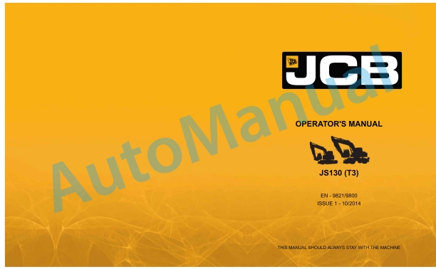 JCB JS130 (T3) Operator Manual 9821-9800