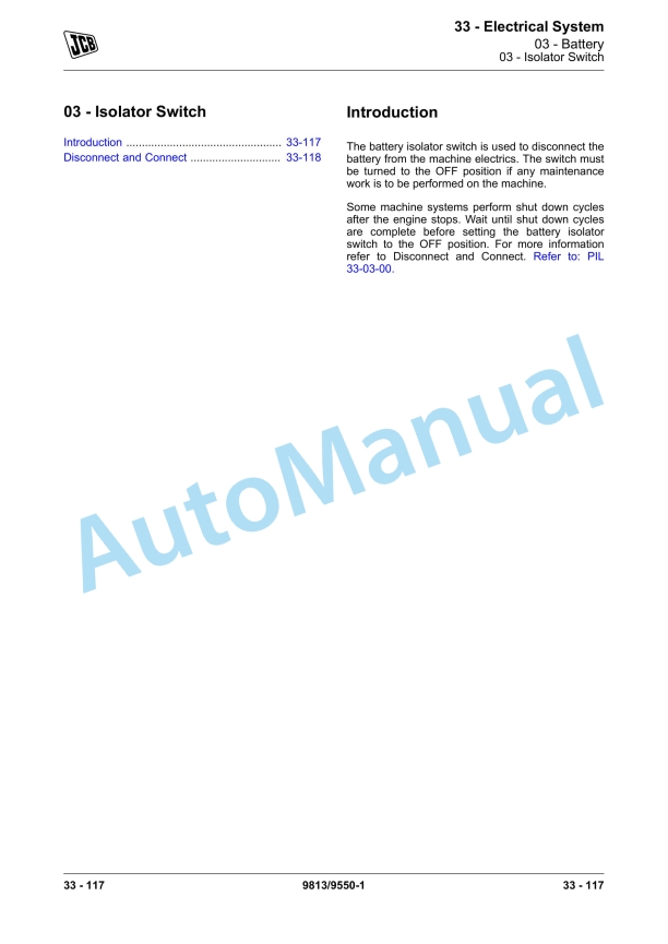 JCB 8085 Service Manual 9803-9990Alternative view of JCB 8085 Service Manual 9803-9990