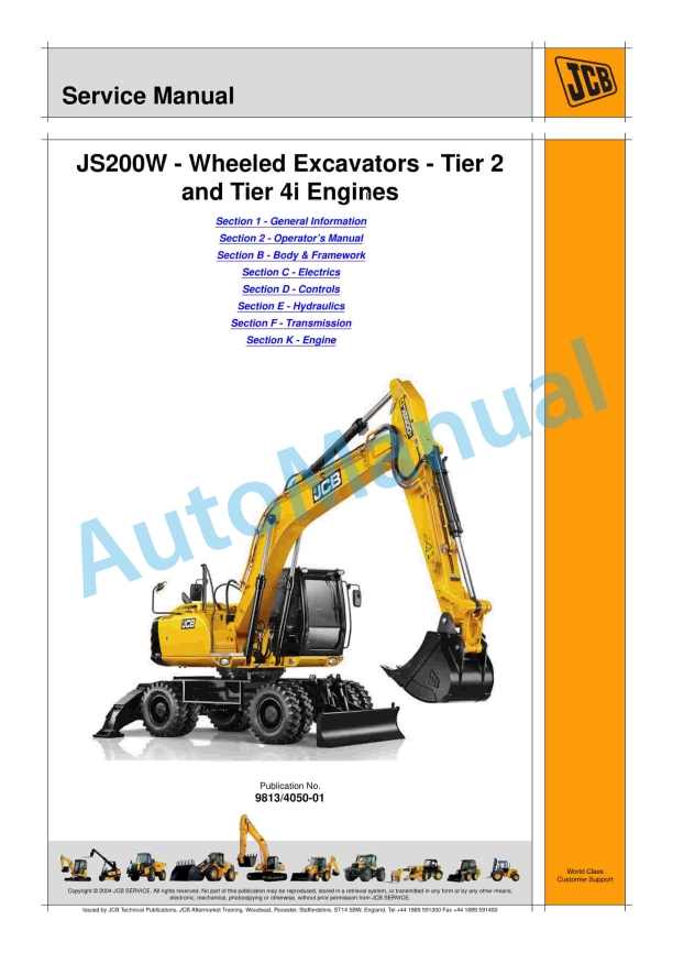 JCB JS200W – Wheeled Excavators – Tier 2, Tier 4i Engines Service Manual 9813-4050