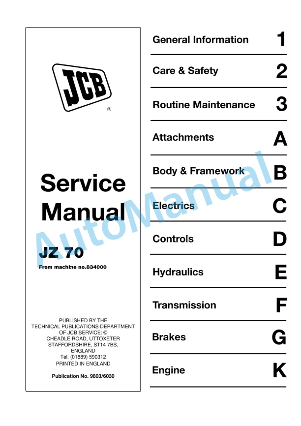 JCB 926, 930, 940, 945, 950 Rough Terrain Truck Service Manual 9813-6600