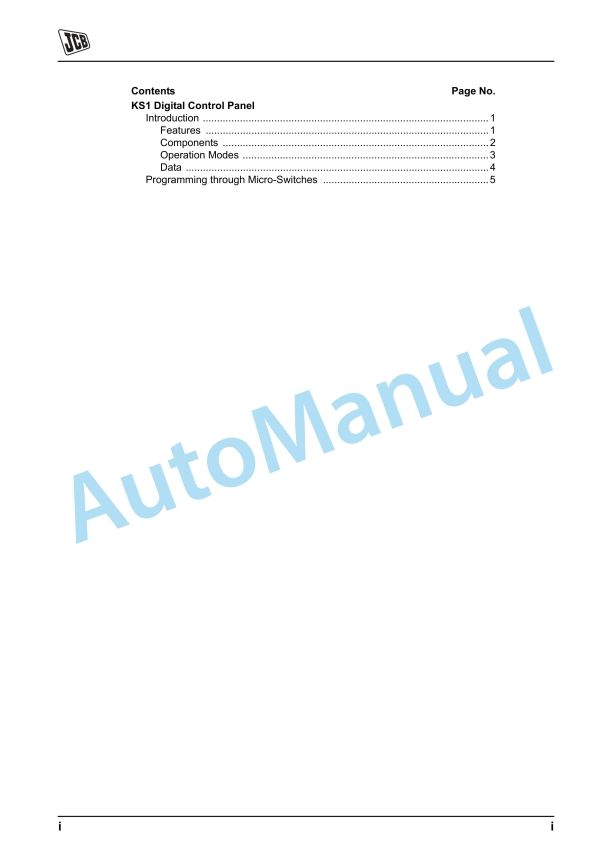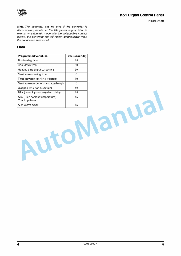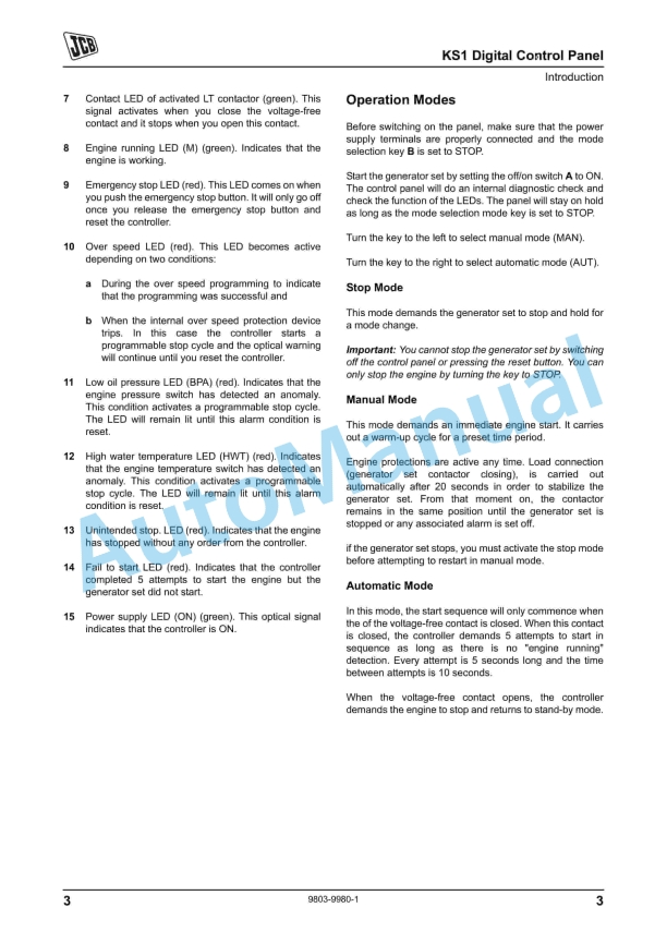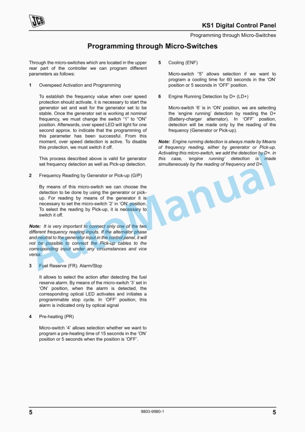 JCB KS1 Digital Control Panel Service Manual 9803-9980