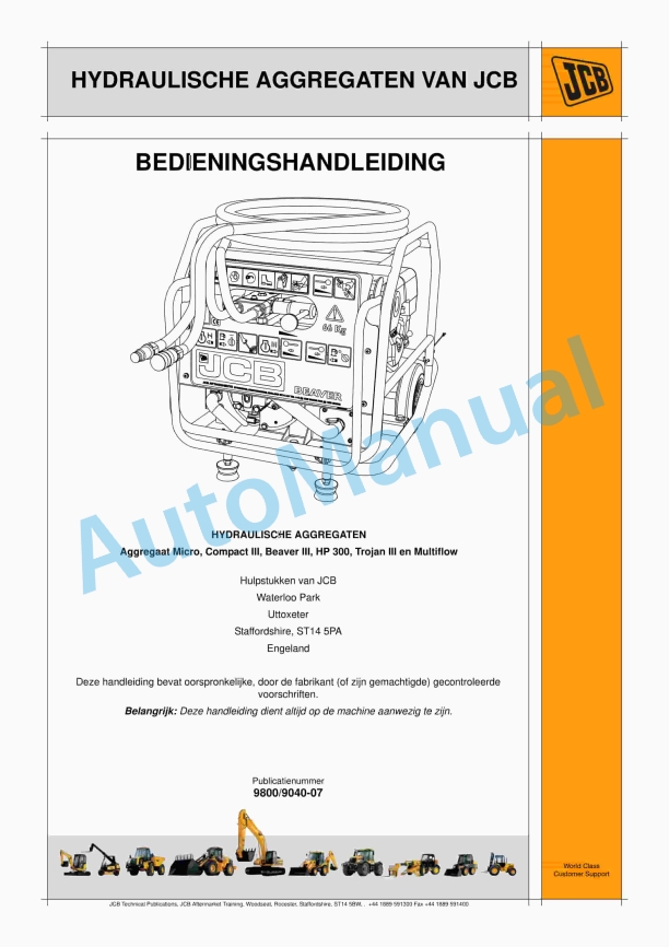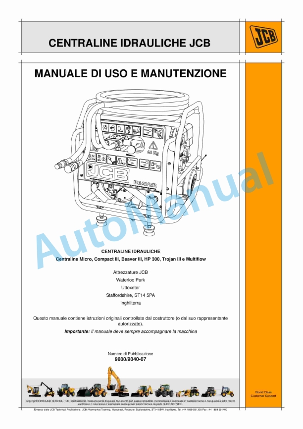 JCB Micro, Compact III, Beaver III, HP 300, Trojan III, Multiflow Powerpacks Operator Manual 9800-9040