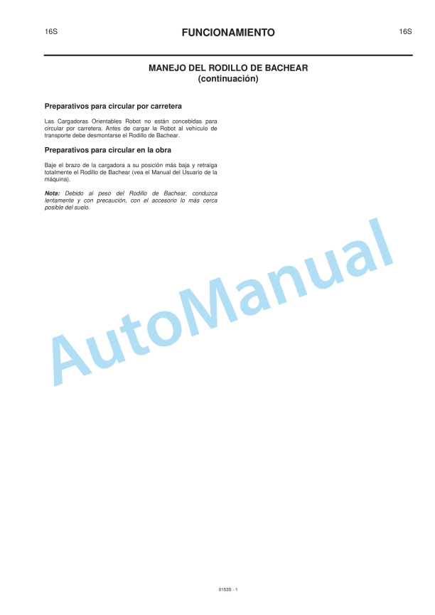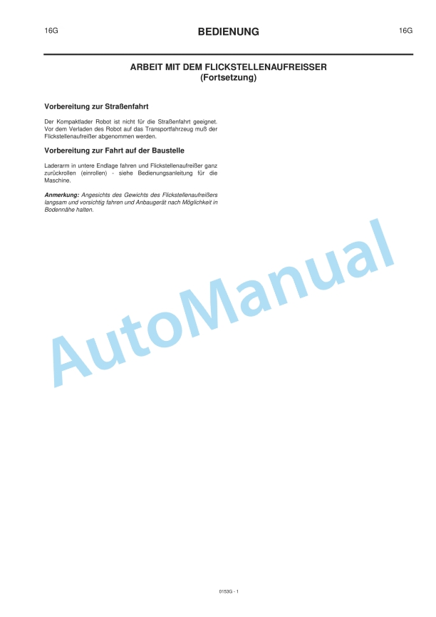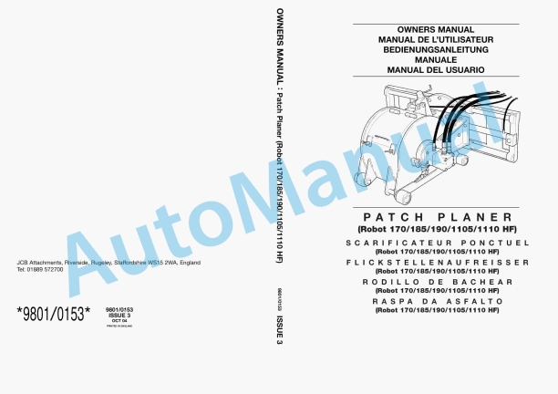 JCB Patch Planer (Robot 170, 185, 190, 1105, 1110 HF) Owners Manual 9801-0153
