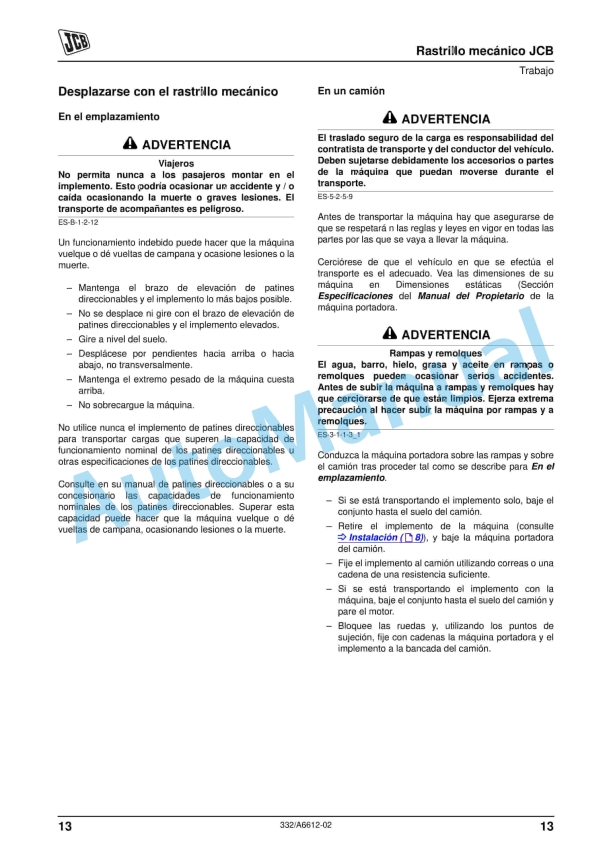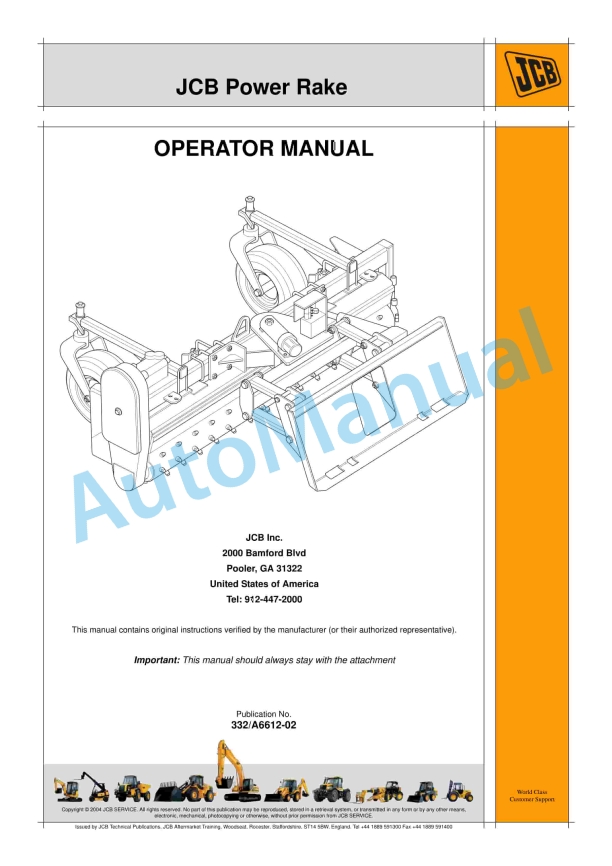JCB Power Rake Operator Manual 332-A6612-02