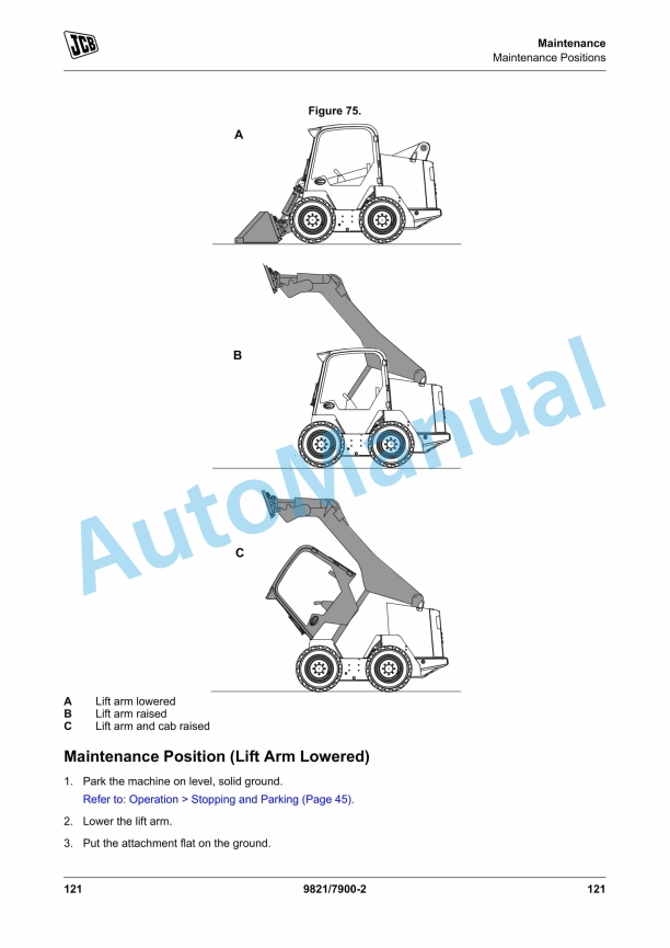 - 181. Maintenance Position (Lift Arm Lowered) ……………………………………………………………………………. 121