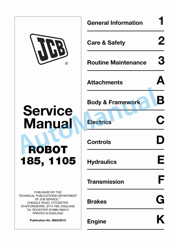 JCB 8056 Service Manual 9803-9296Alternative view of JCB 8056 Service Manual 9803-9296