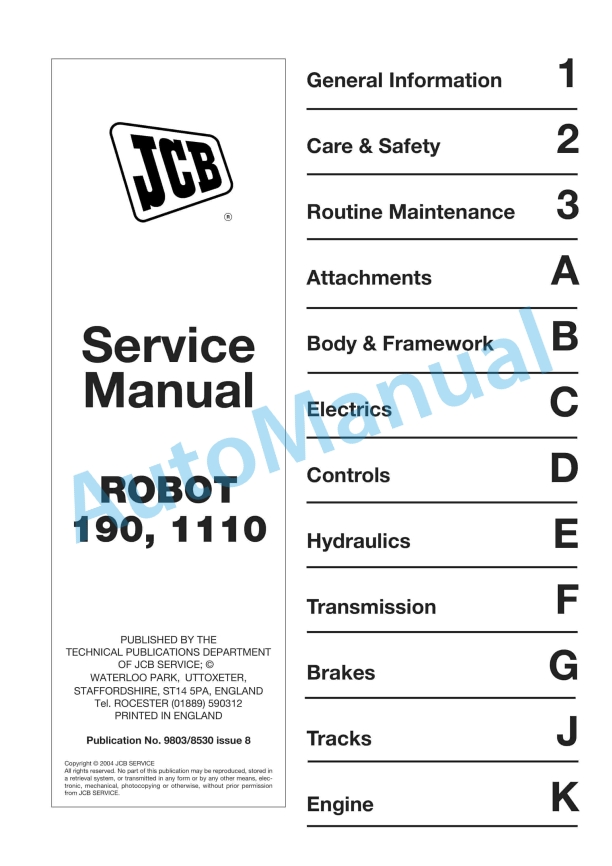 JCB Robot 190, 1110 Service Manual 9803-8530