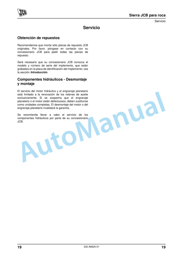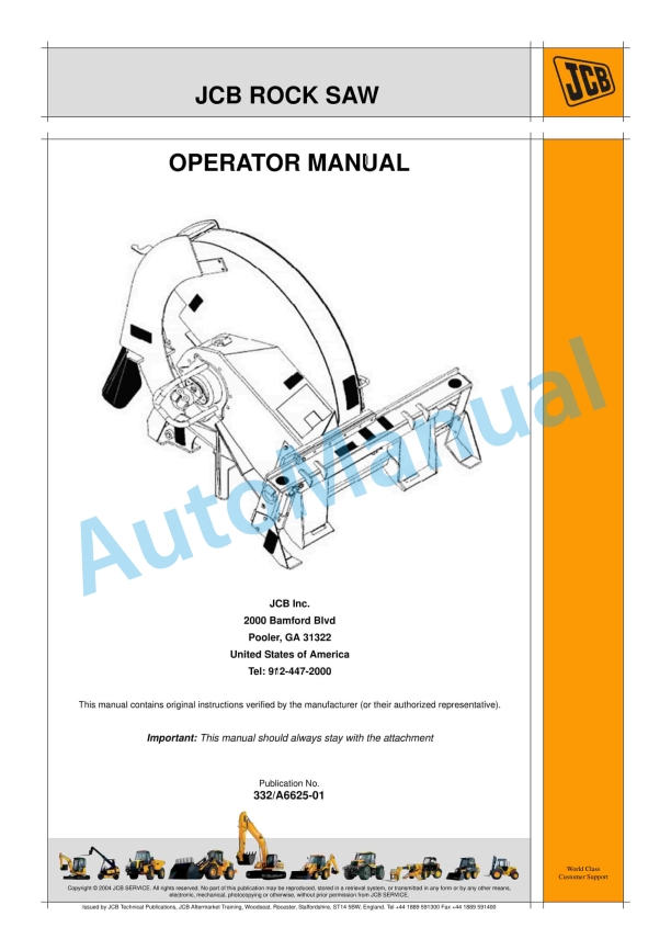 JCB Rock Saw Operator Manual 332-A6625-01