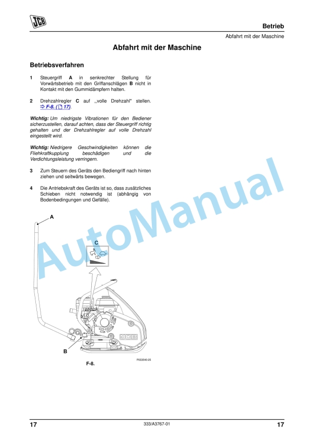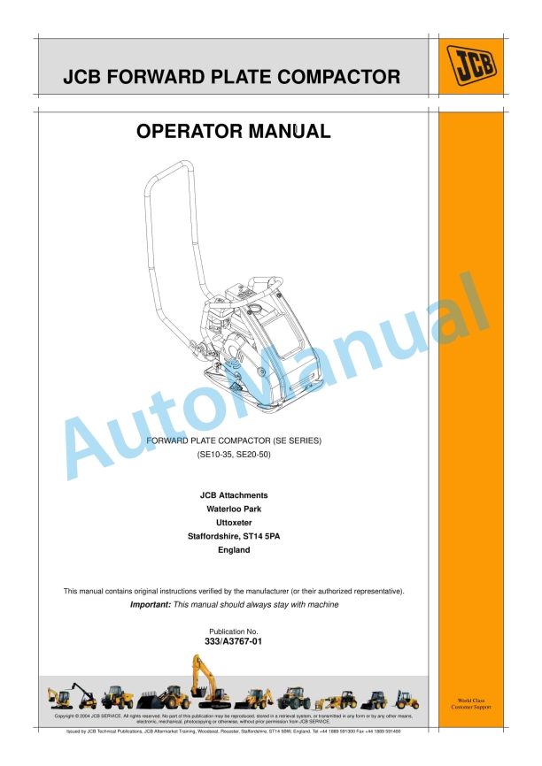 JCB SE10-35, SE20-50 Forward Plate Compactor Operator Manual 333-A3767-01