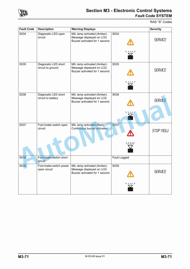JCB 8025ZTS, 8026CTS, JS30, 8029CTS, 8030ZTS, 8035ZTS Service Manual 9803-9410
