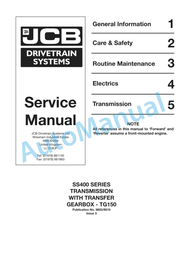 JCB 8056 Service Manual 9803-9296Alternative view of JCB 8056 Service Manual 9803-9296