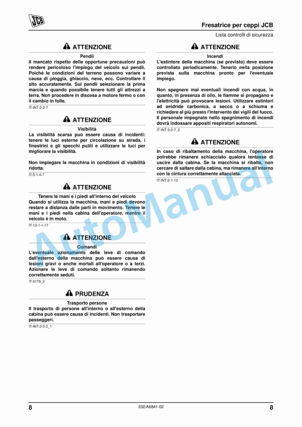 JCB Stump Grinder Operator Manual 332-A6841-02