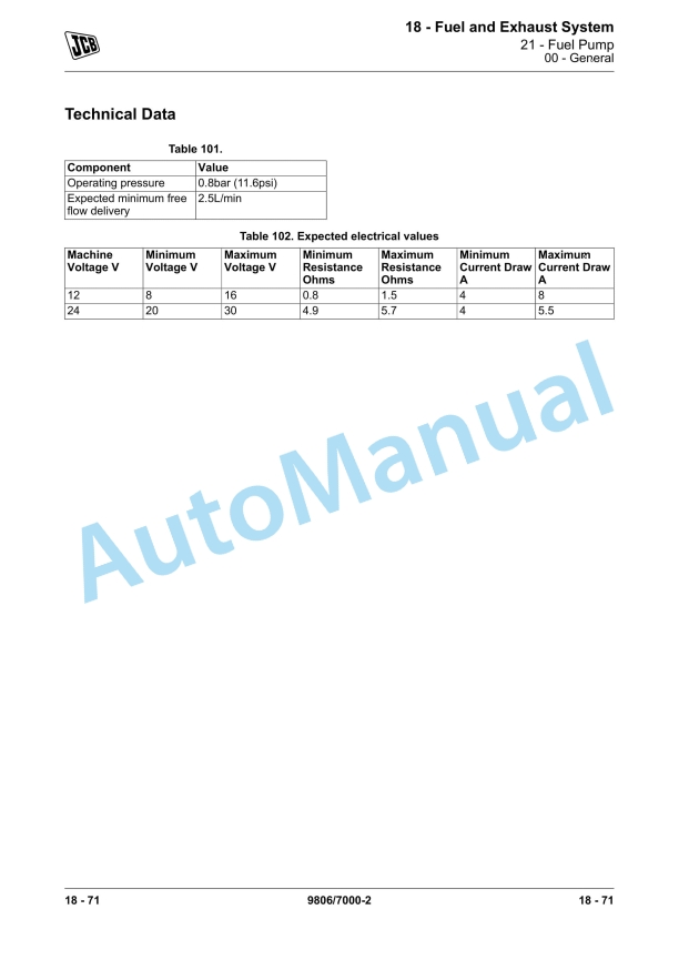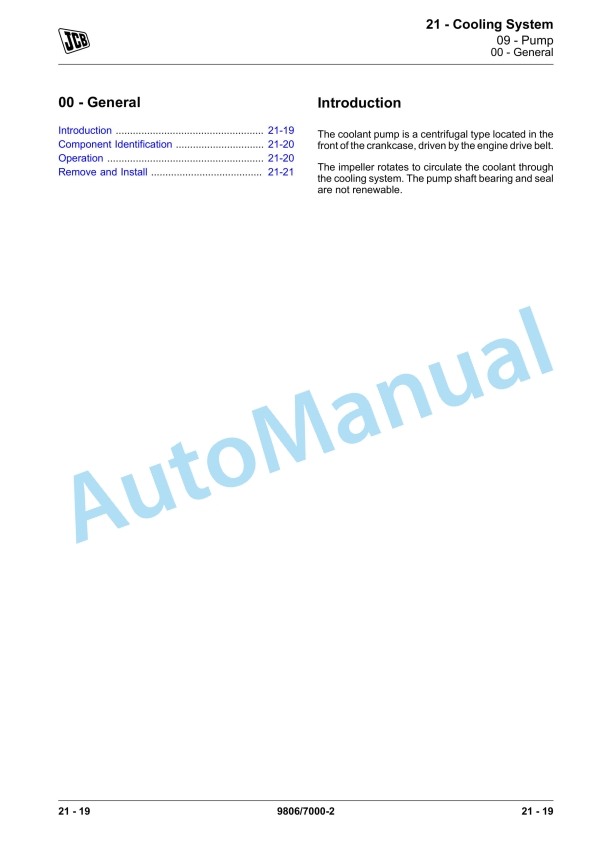 JCB T2-3 Elec Engine 4 Cyl Service Manual 9806-7000