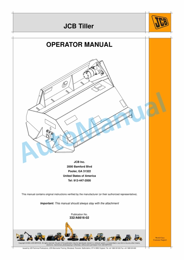 JCB Tiller Operator Manual 332-A6616-02