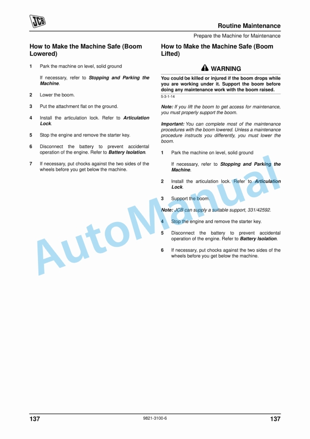- 135. How to Make the Machine Safe (Boom Lifted) ……………………………….137
