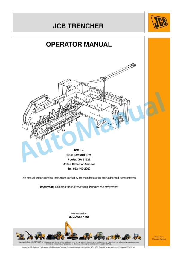 JCB Trencher Operator Manual 332-A6617-02