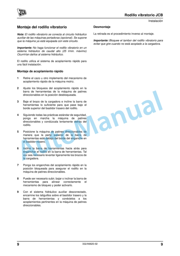 JCB Vibratory Roller Operator Manual 332-A6620-02