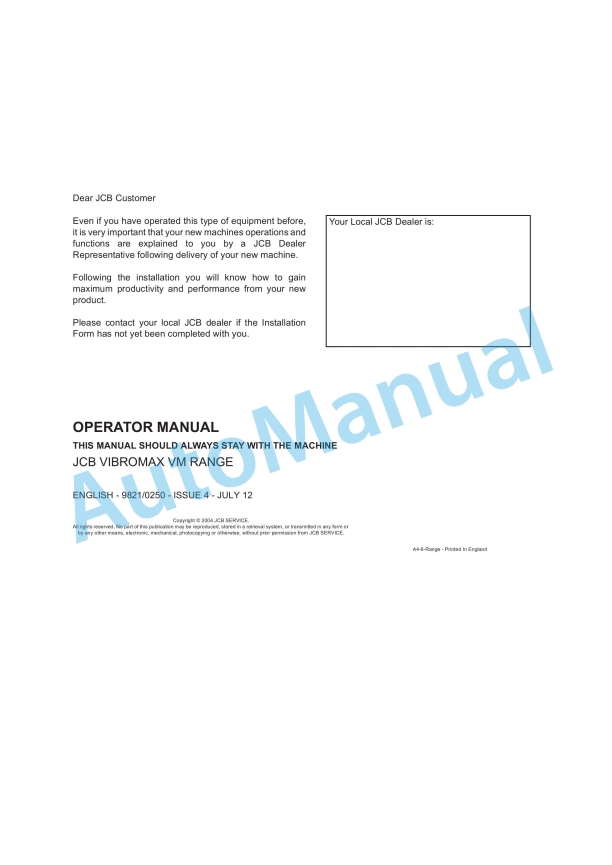 JCB VM Range Vibromax Operator Manual 9821-0250 - Image 2