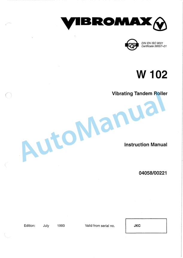 JCB W 102 Vibrating Tandem Roller Instruction Manual 04058-00221-5