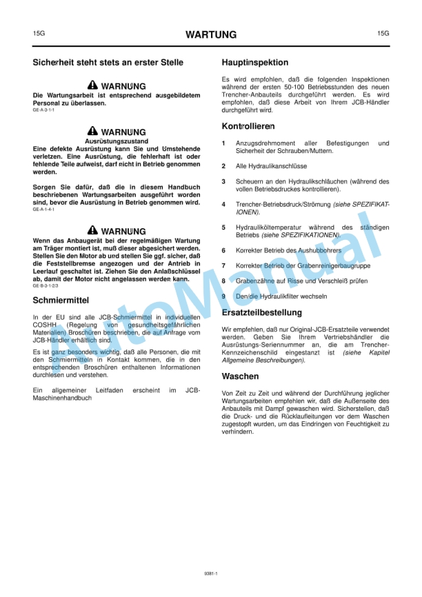JCB X Series Trencher Owners Manual 9801-9381 - Image 2