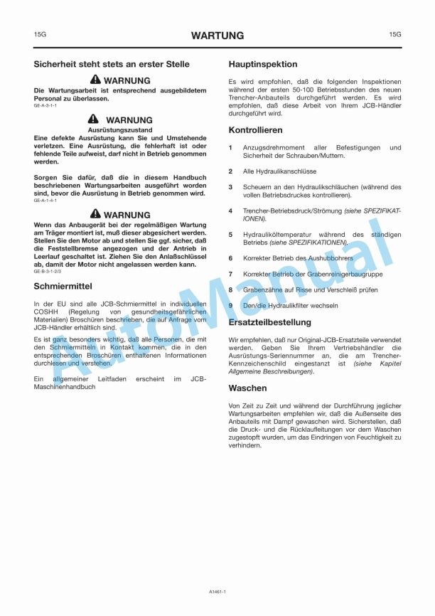 JCB XR Series Trencher Owners Manual 332-A1461