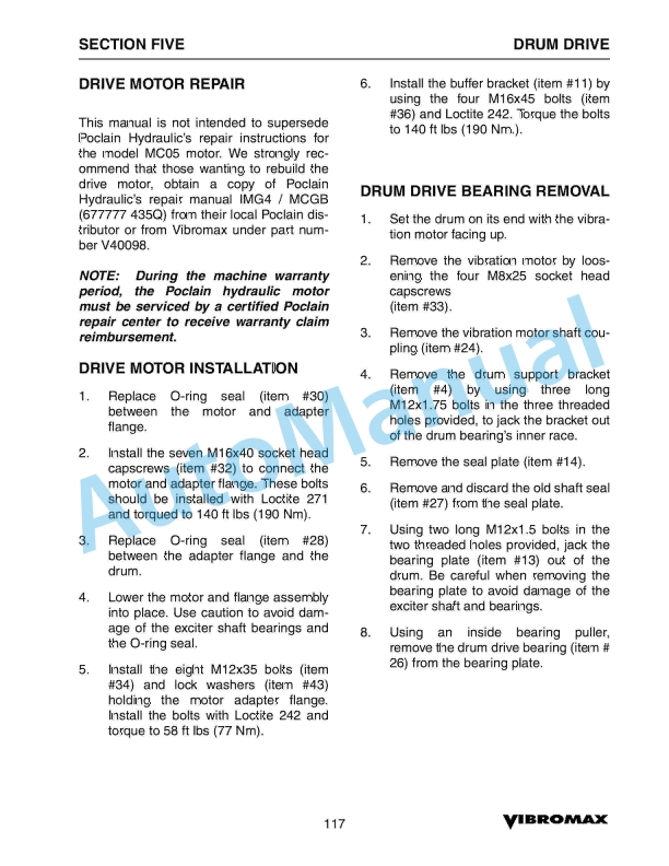 Vibromax VM116, VM146, VM166, VM186 Single Drum Roller Service Manual SM96116Alternative view of Vibromax VM116, VM146, VM166, VM186 Single Drum Roller Service Manual SM96116