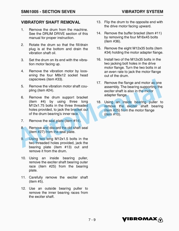 - 96. VIBRATORY SHAFT REMOVAL…………………………………………………………… 7 – 9