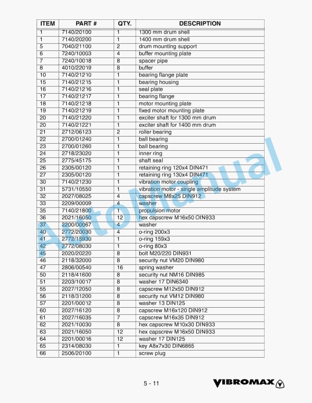 Vibromax 1105, 1106, 1405, 1805 Single Drum Roller Service Manual SM95005