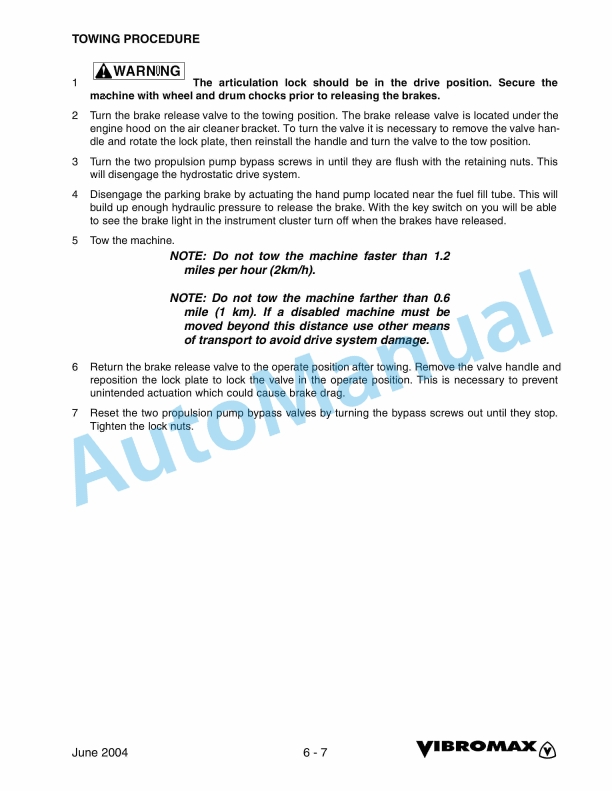 - 86. TOWING YOUR MACHINE ………………………………………………………………….. 6 – 6