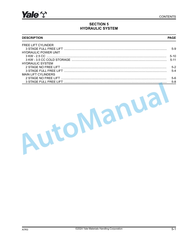 - 5.2. HYDRAULIC SYSTEM 3 STAGE FULL FREE LIFT