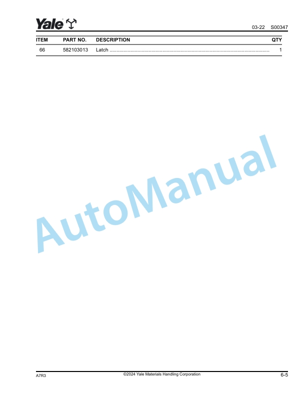 Yale A7R3 MS15XUX Parts Manual 550221591