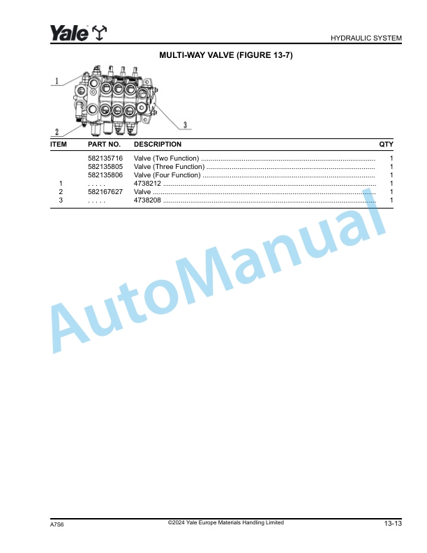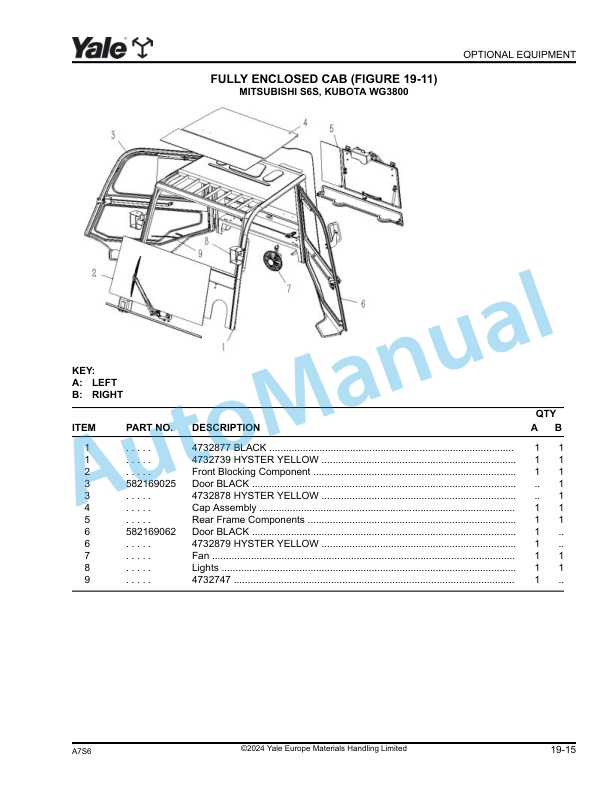 Yale A7S6 GP40UX, GP45UX, GP50UX, GP50UXS6 Parts Manual 550253251