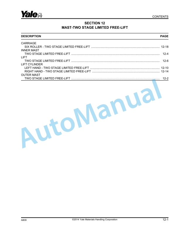 Yale A809 GC-GLC030-040AF Parts Manual 504250775 - Image 2