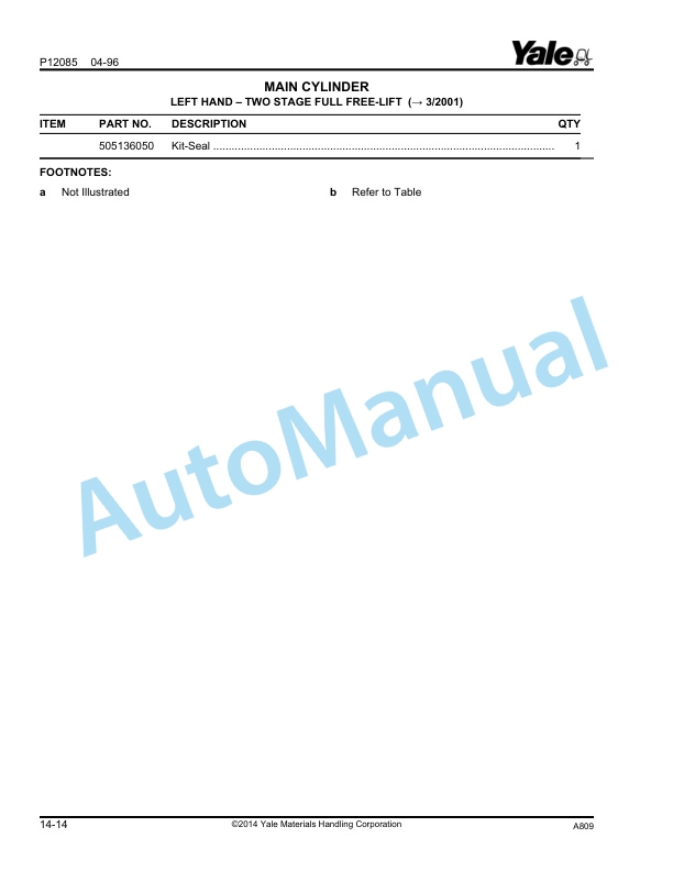 Yale A802 MPW045D Parts Manual 585088701Alternative view of Yale A802 MPW045D Parts Manual 585088701