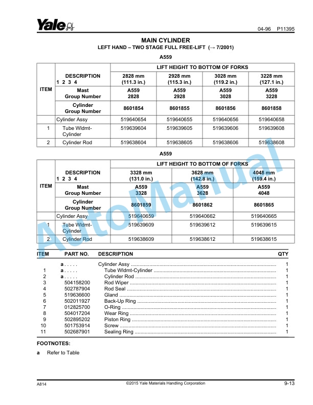 - 9.5. MAIN CYLINDER LEFT HAND – TWO STAGE FULL FREE-LIFT ( 7/2001)