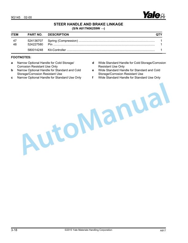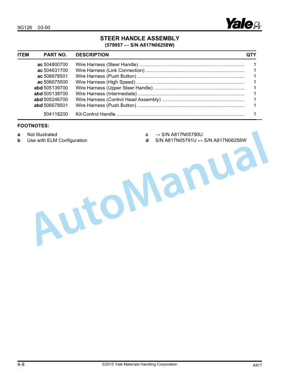 Yale A474 – A497 – E826 ss030bf, FS030BF, OS030BF Order Picker Parts Manual 550032957