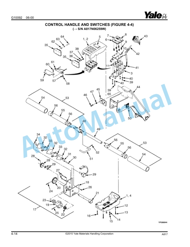 Yale A817 MTR700 700 LB. Draw Bar Pull Parts Manual 215750194