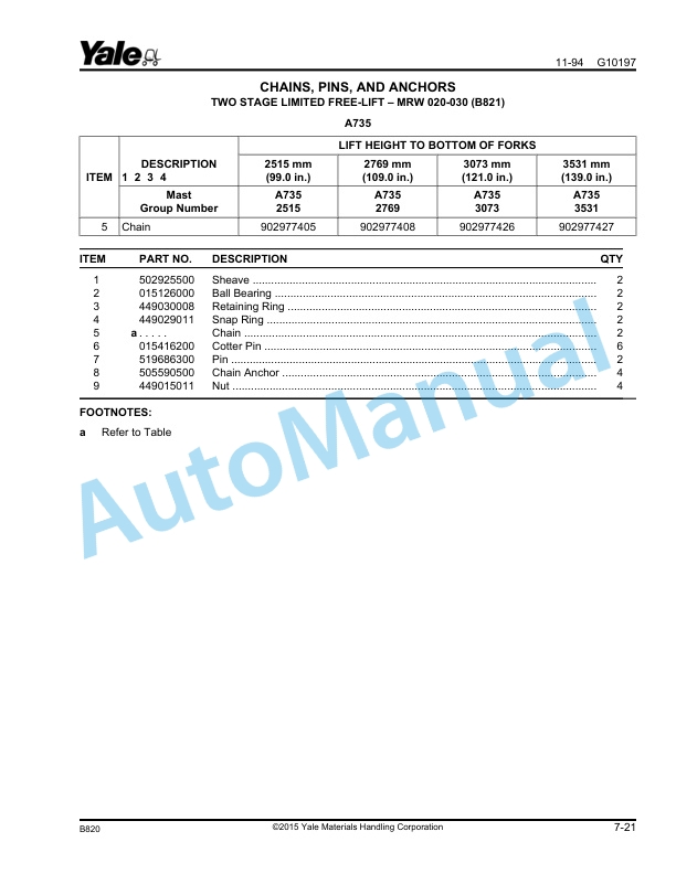 • 7.9. CHAINS, PINS, AND ANCHORS TWO STAGE LIMITED FREE-LIFT – MRW 020-030 (B821)