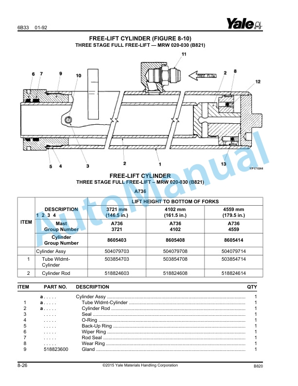 • 8.10. FREE-LIFT CYLINDER THREE STAGE FULL FREE-LIFT – MRW 020-030 (B821)