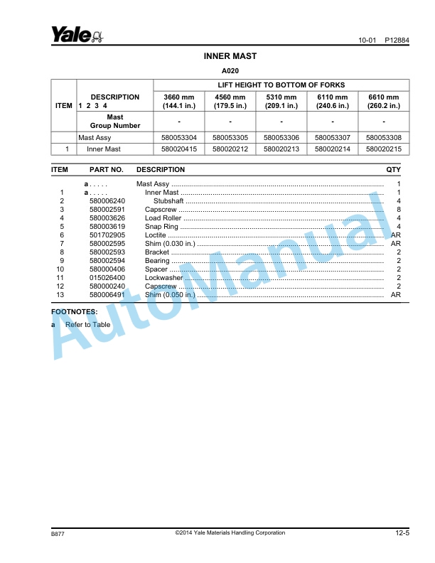 Yale A7R3 MS15XUX Parts Manual 550220626