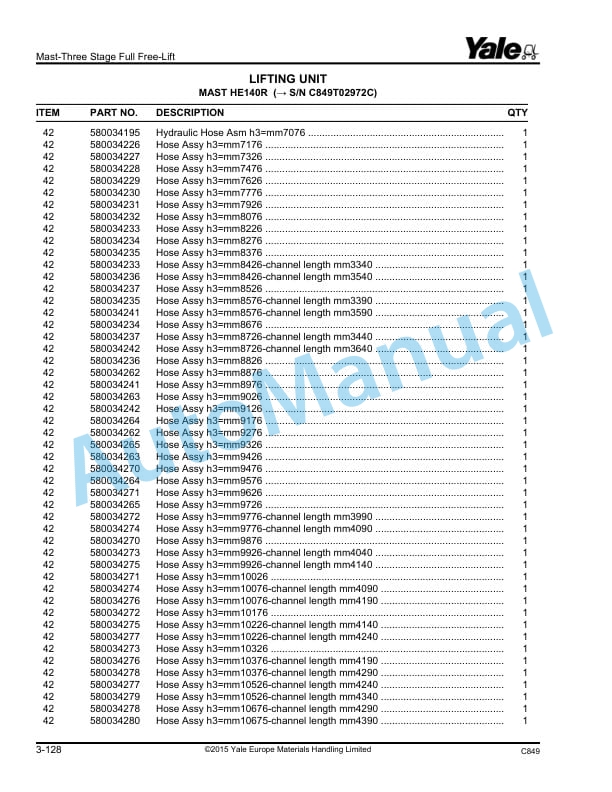- 59.26. LIFTING UNIT MAST HE140 (S/N C849T05109F )