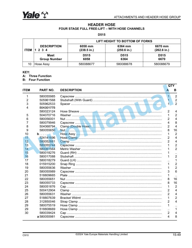 - 10.6. AUXILLIARY HOSES THREE STAGE FULL FREE LIFT – TWO STAGE LIMITED FREE-LIFT