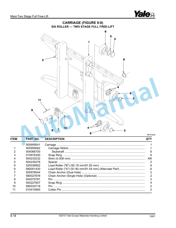 Yale D807 ERP1.6-2.0ATF Parts Manual 524150863 - Image 3