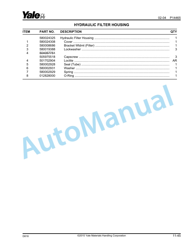 Yale A809 GC-GLC030-040AF Parts Manual 504250775Alternative view of Yale A809 GC-GLC030-040AF Parts Manual 504250775