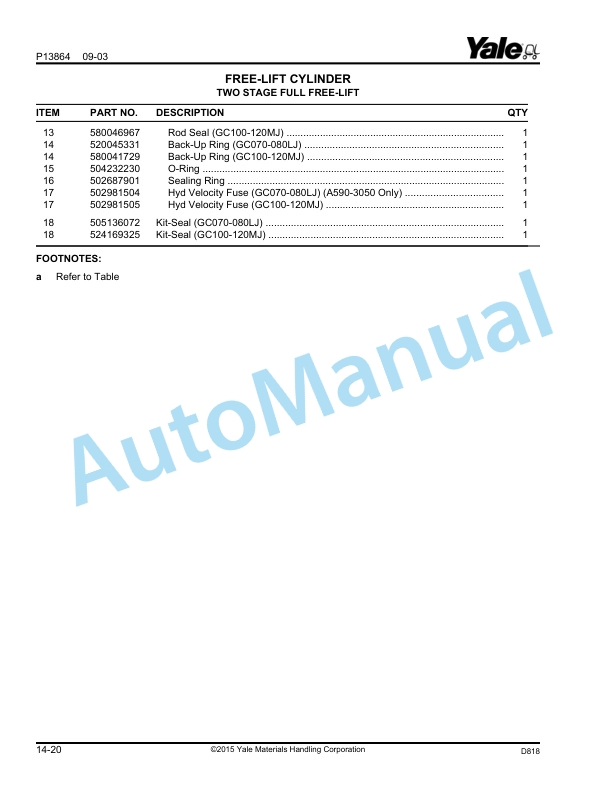 Yale D818 GC-GDC-GLC070-080LJ-LJ-BCS, GC-GDC-GLC100-120MJ-MJ-BCS Parts Manual 524208282